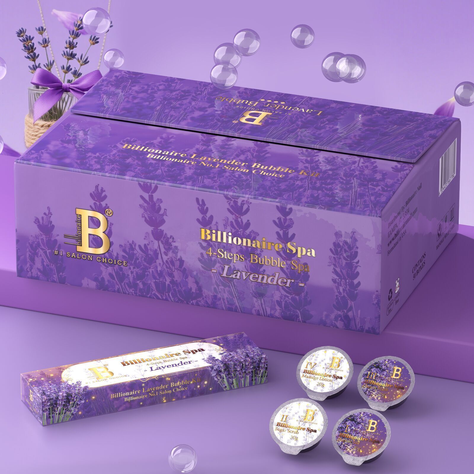 Billionaire Bubble Spa Nail Deluxe Pedicure Kit 4 Steps - Lavender