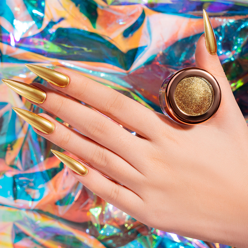 Get the perfect mirror shine with our 18-color Chrome Collection. These trendy, high-shine powders create a bold, metallic finish that lasts. Easy to apply and perfect for any style.