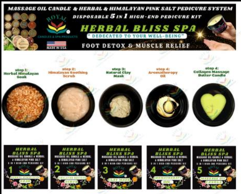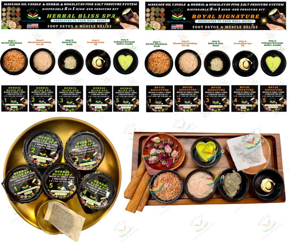 Elevate every pedicure into a complete foot therapy experience with the Royal 5-in-1 Foot Therapy Pedicure System — a high-end, disposable spa treatment designed to detox, relax muscles, soften calluses, and deeply nourish the skin. Made in the USA with all-natural ingredients, this professional pedicure system delivers luxury, performance, and peace of mind in every service.