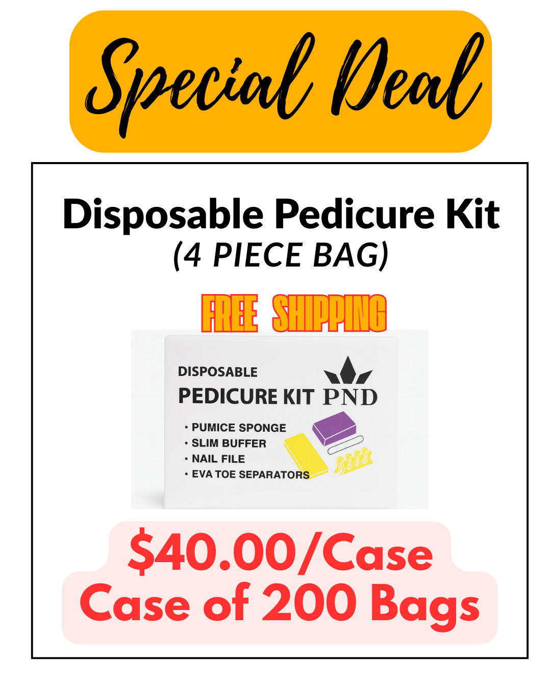Disposable Pedicure Kit – 4 Piece Bag (Case of 200 Bags)
