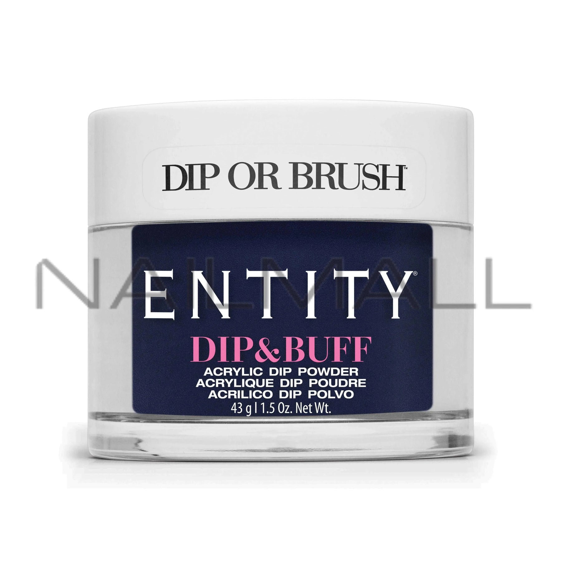 - A navy blue shimmer dip powder shade.